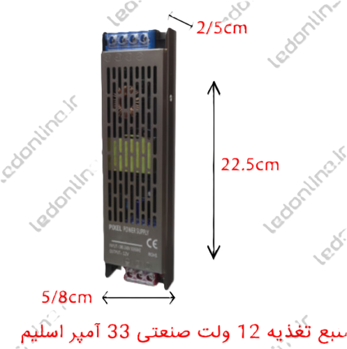 منبع تغذیه ۱۲ ولت ۳۳ آمپر اسلیم ۴۰۰ وات با دو سال گارانتی برند پیکسل