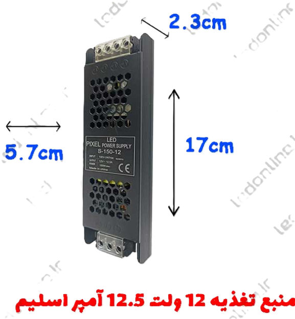 منبع تغذیه ۱۲ ولت ۱۲٫۵ آمپر اسلیم (slim) برند پیکسل