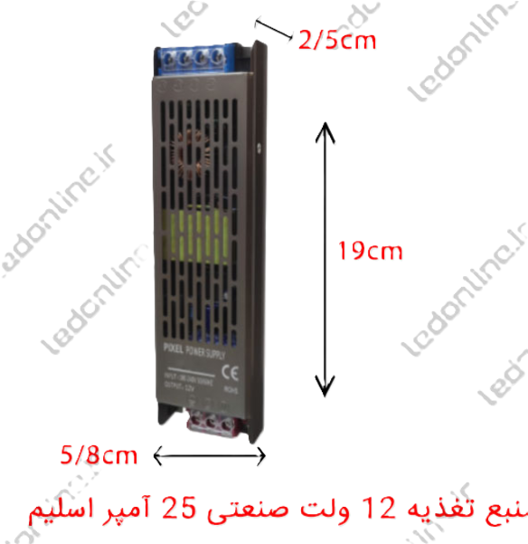 منبع تغذیه ۱۲ ولت ۲۵ آمپر اسلیم ۳۰۰ وات با دو سال گارانتی برند پیکسل